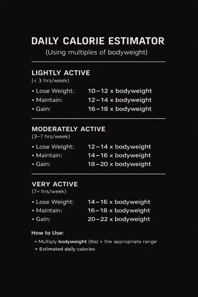 This is straight from Precision Nutrition’s Level 1 framework — a practical starting point for calculating energy needs before fine-tuning.